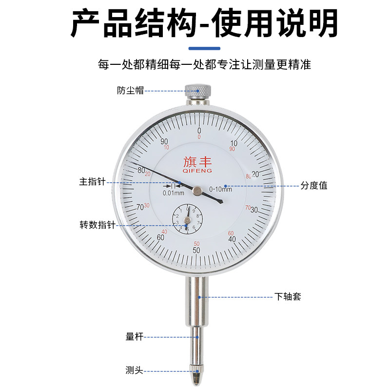 推荐理由:旗丰百分表一套校表头精度0.01指示表0-10mm磁力磁性表座