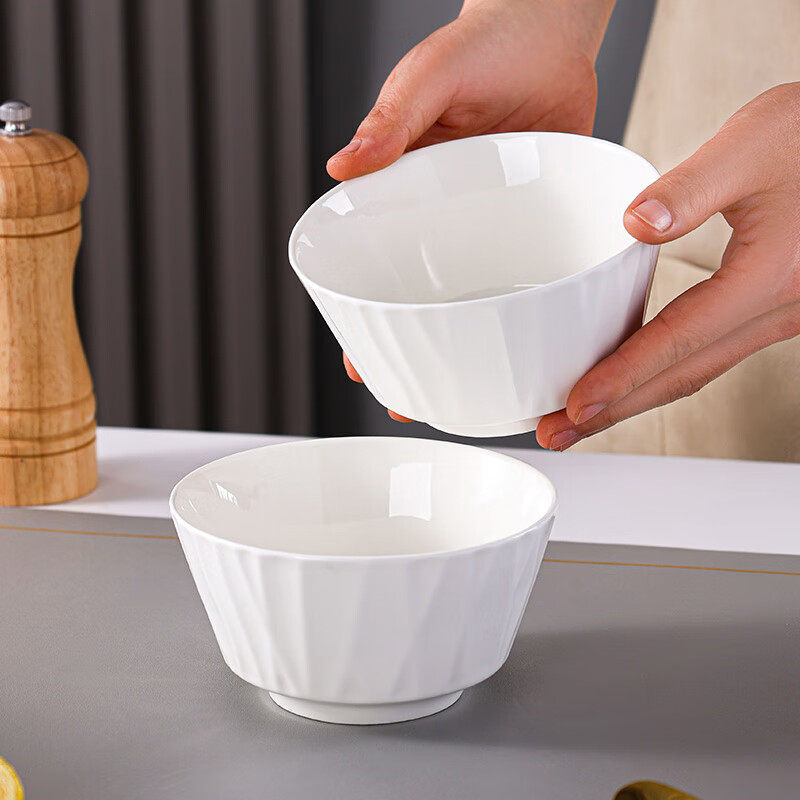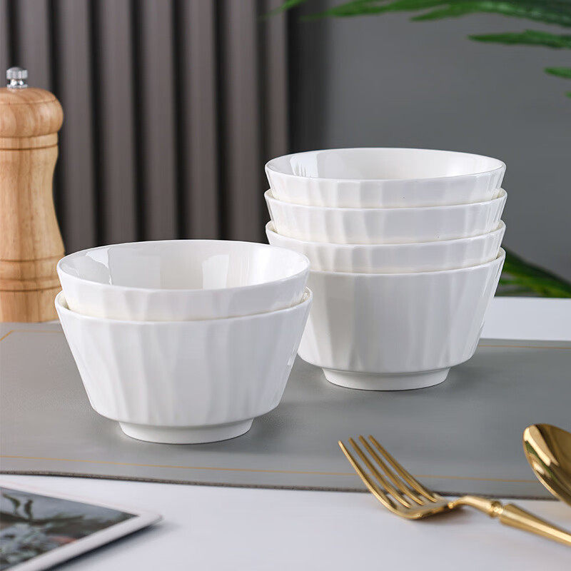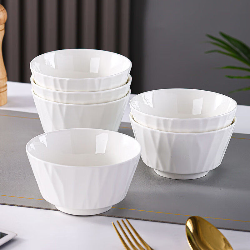 传旗】米饭碗中式釉下彩4.5英寸陶瓷碗白瓷小碗家用套装 白色琉璃