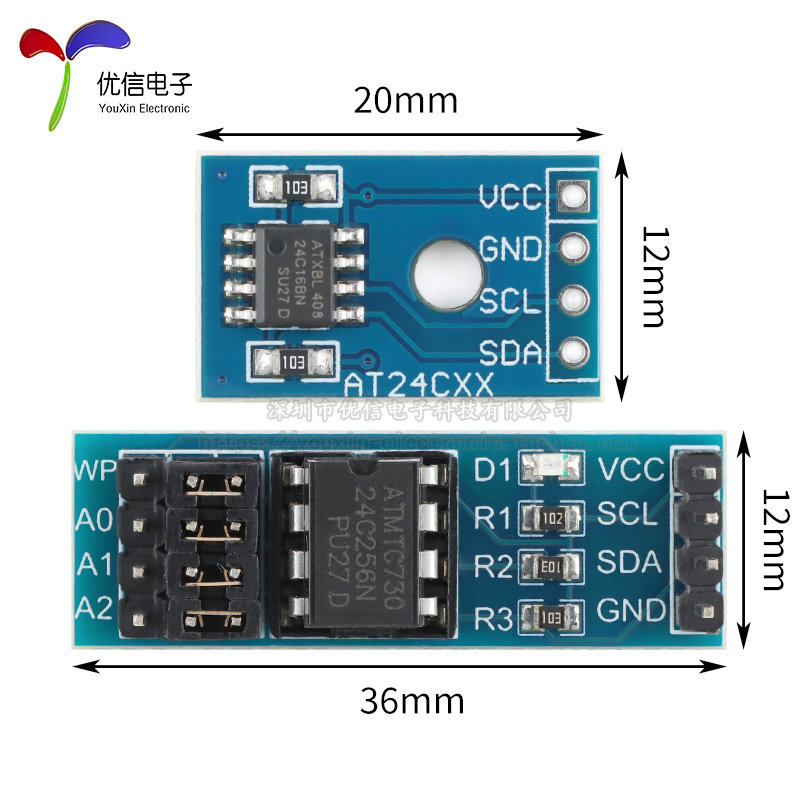 AT24C02/04/08/16/32/64/128/256 EEPROM存储器芯片模块 I2C接口