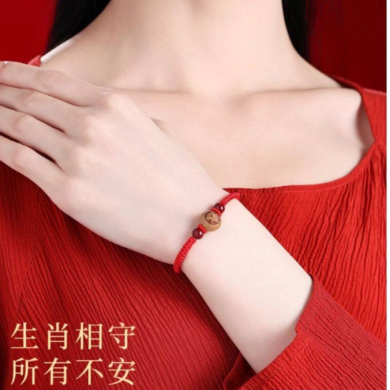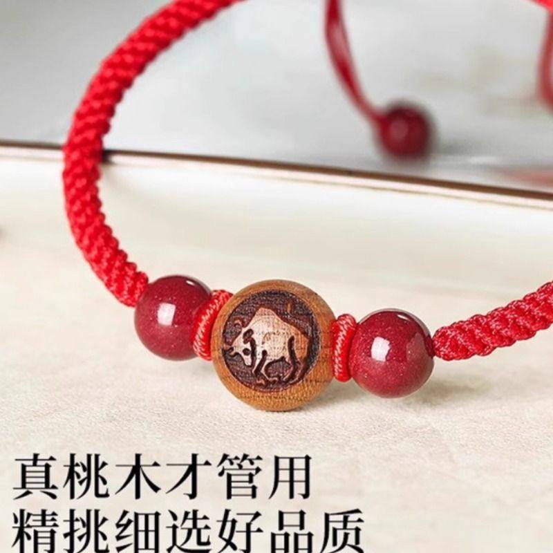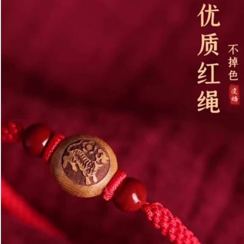 红绳本命年桃木生肖手串男女款马年脚链朱砂转运珠平安符编织手绳