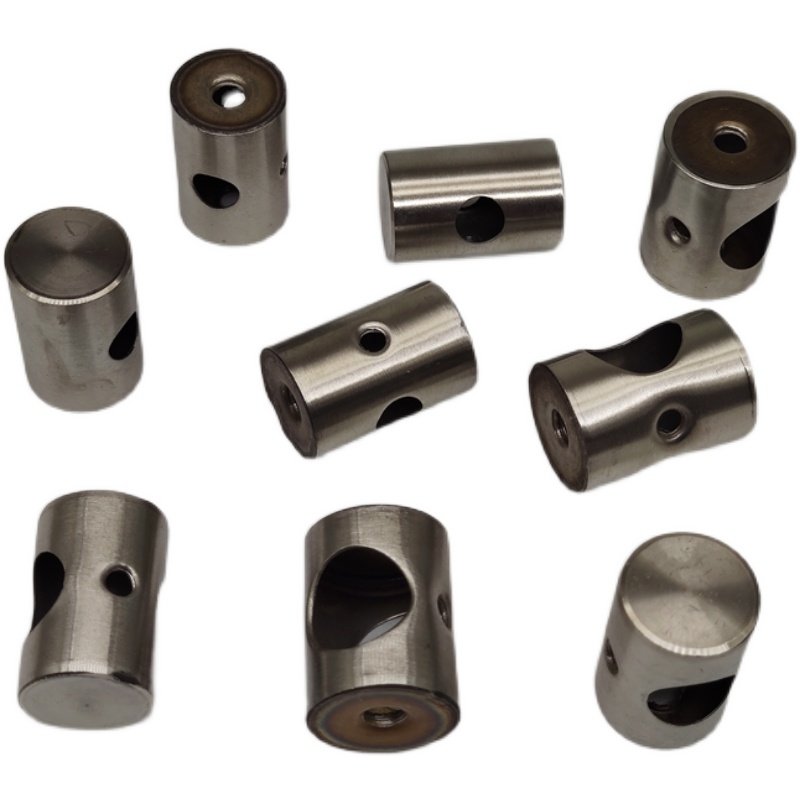 不锈钢楼梯扶手护栏立柱配件穿圆管连接件拉丝堵头单双牙玻璃配件