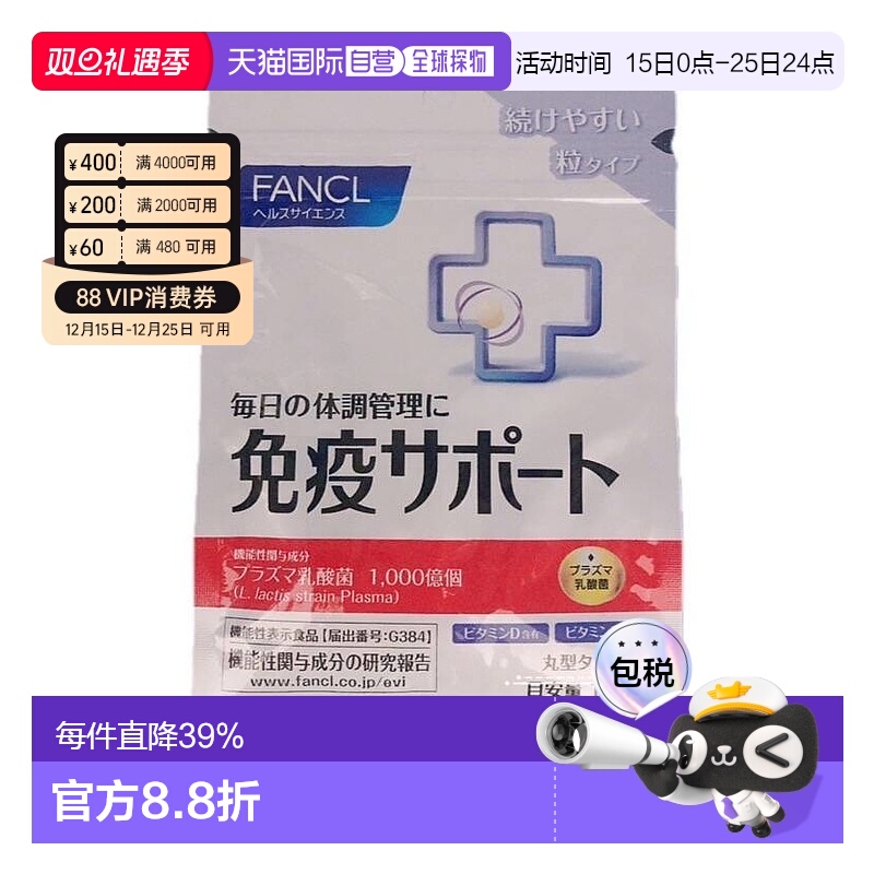 日本直邮日本直邮FANCL芳珂免疫VC30粒*3包乳酸益生菌维生素CVB口