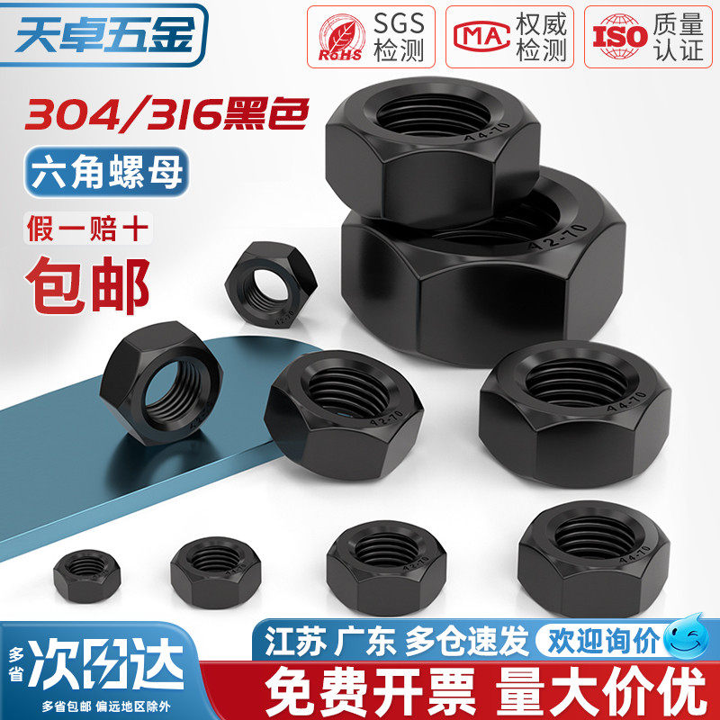 推荐理由:黑色304/316不锈钢六角螺母螺帽镀黑锌螺丝帽螺栓大全M3M4M5M6M10