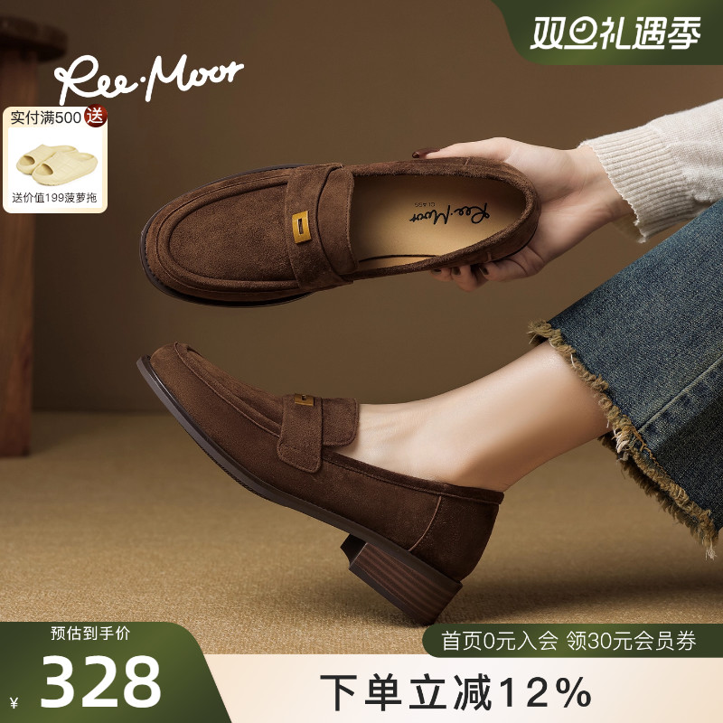 REEMOOR睿慕25秋季新款法式复古绒面圆头乐福鞋厚底增高小皮鞋女