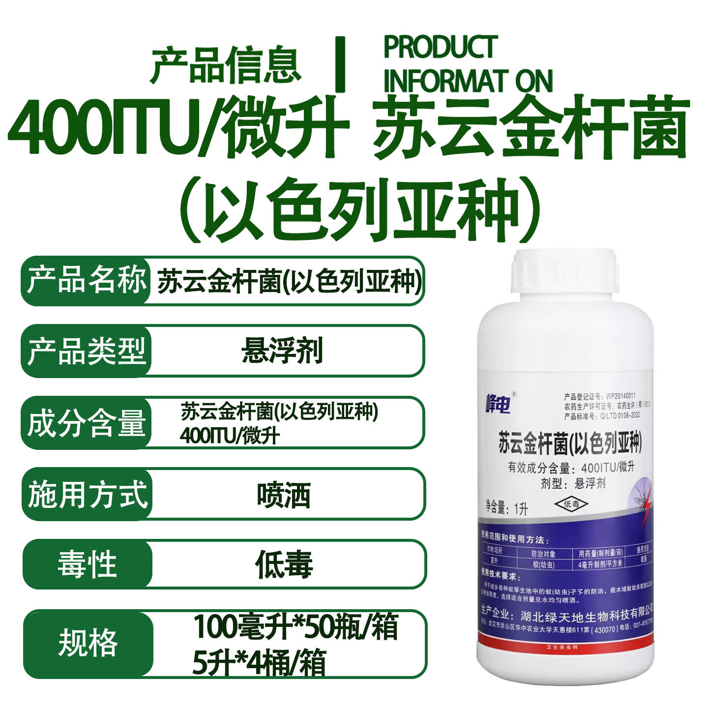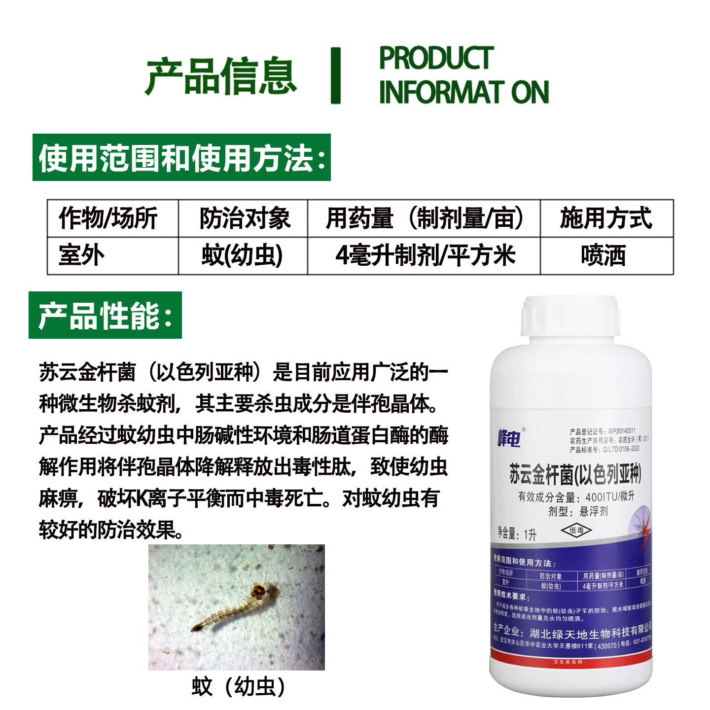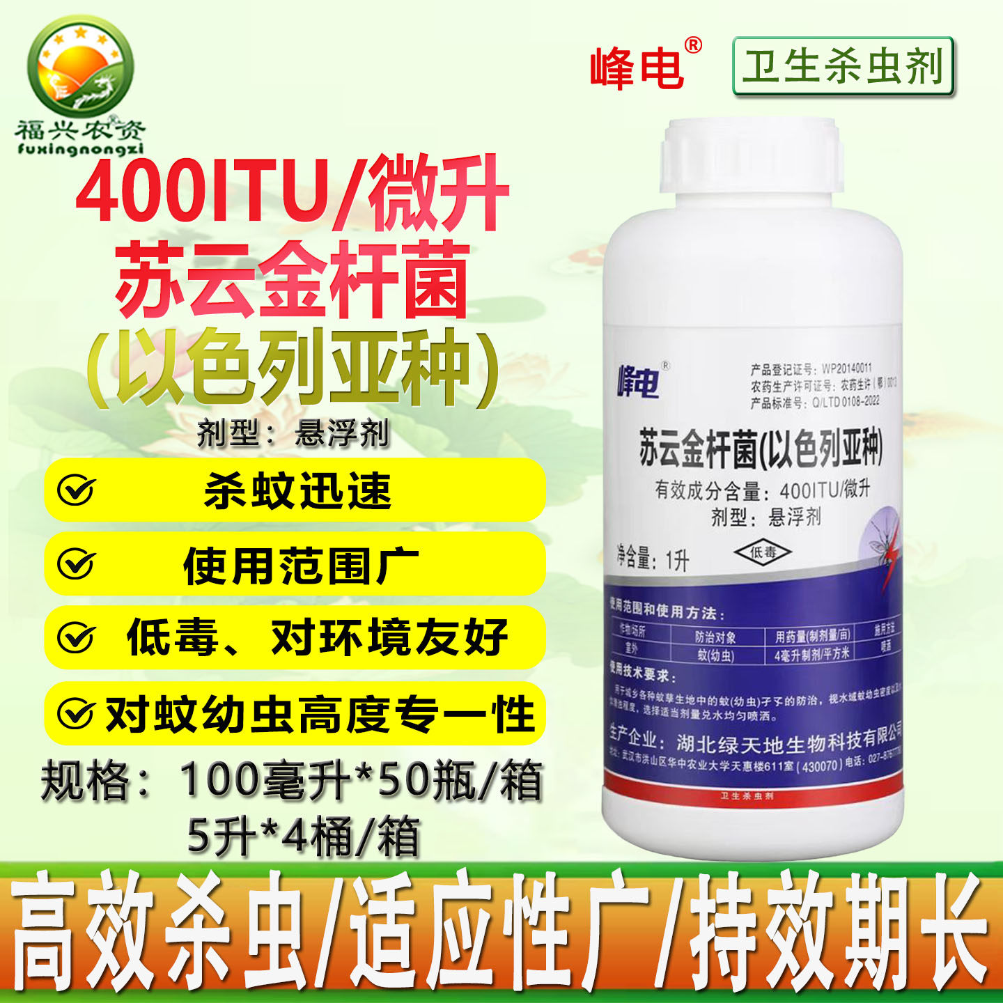 峰电苏云金杆菌以色列亚种蚊子幼虫 虫卵 孑孓水塘卫生杀虫剂农药