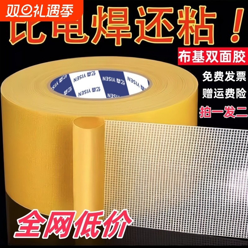 布基网格双面胶带超强粘力可撕不留痕婚庆地毯墙面学生手工透明胶
