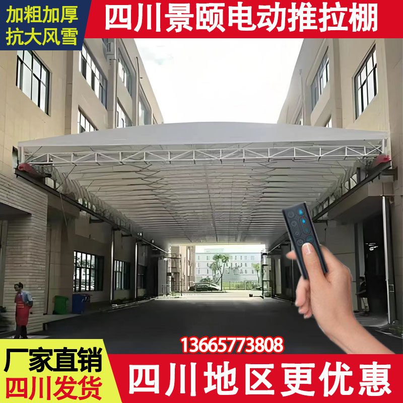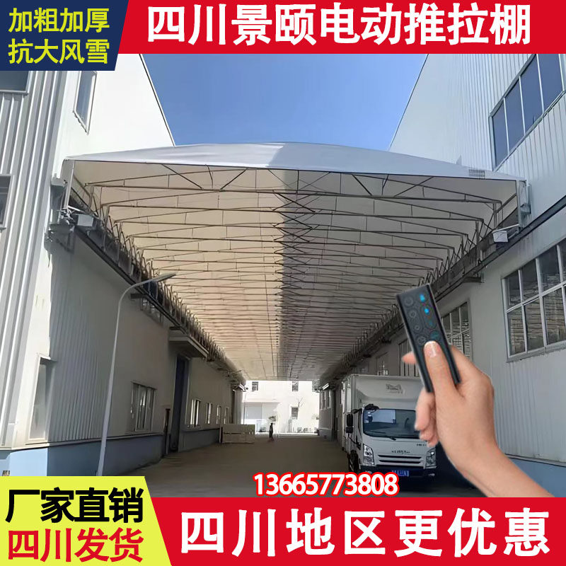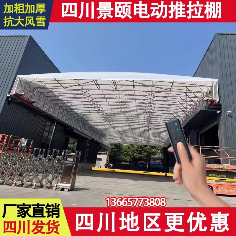 推荐理由:四川电动推拉雨棚仓库过道伸缩雨棚轨道篮球场顶蓬遥控收缩移动棚