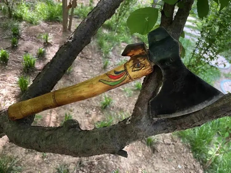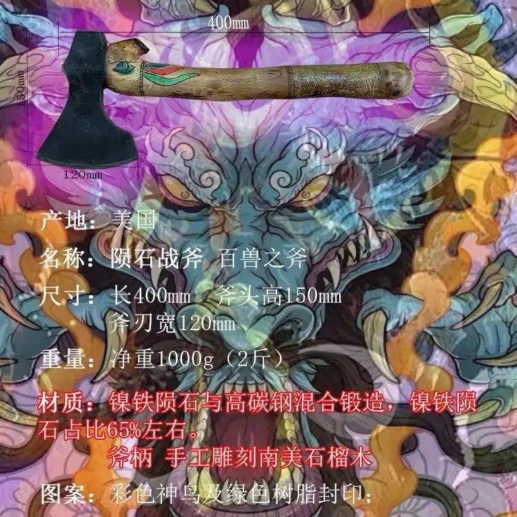 推荐理由:维京战斧纯手工雕刻陨石战斧印第安户外求生斧之百兽之斧孤品