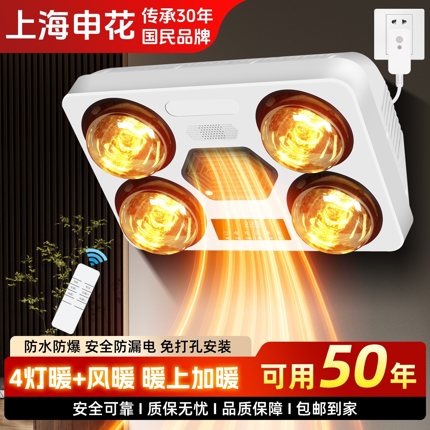 上海申花壁挂式浴霸灯暖卫生间浴室家用挂墙式免打孔取暖灯泡风暖