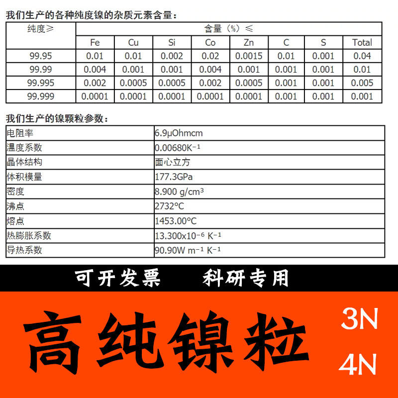推荐理由:镍粒 高纯4N5(纯度99.995%)镍段 镍颗粒 镍球 Ni 金属镍 纯镍棒