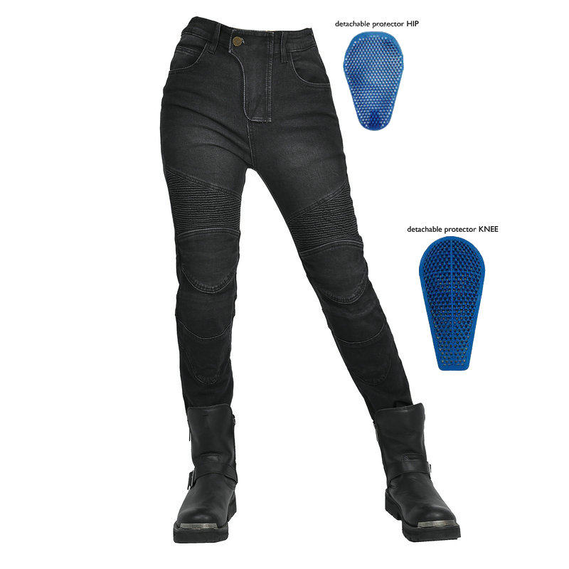 VOLERO休闲复古弹力机车裤 摩托车牛仔裤女骑 机车赛车防摔骑行裤