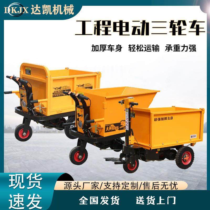 工程三轮车工地电动三轮车灰斗车平板斜斗车建筑运输水泥砂翻斗车