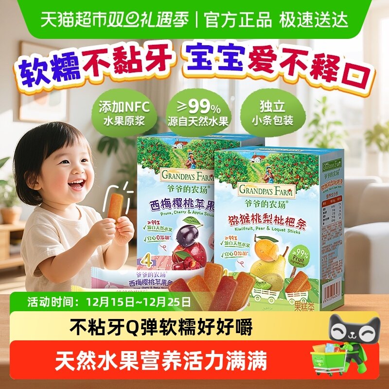 爷爷的农场宝宝零食儿童健康美味水果条60g*2盒宝宝零食果肉条