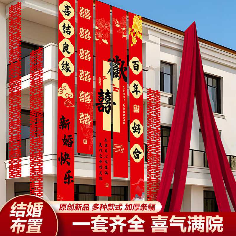 院子农村庭院婚礼布置装饰自建房结婚条幅挂布室外户外拉花男女方