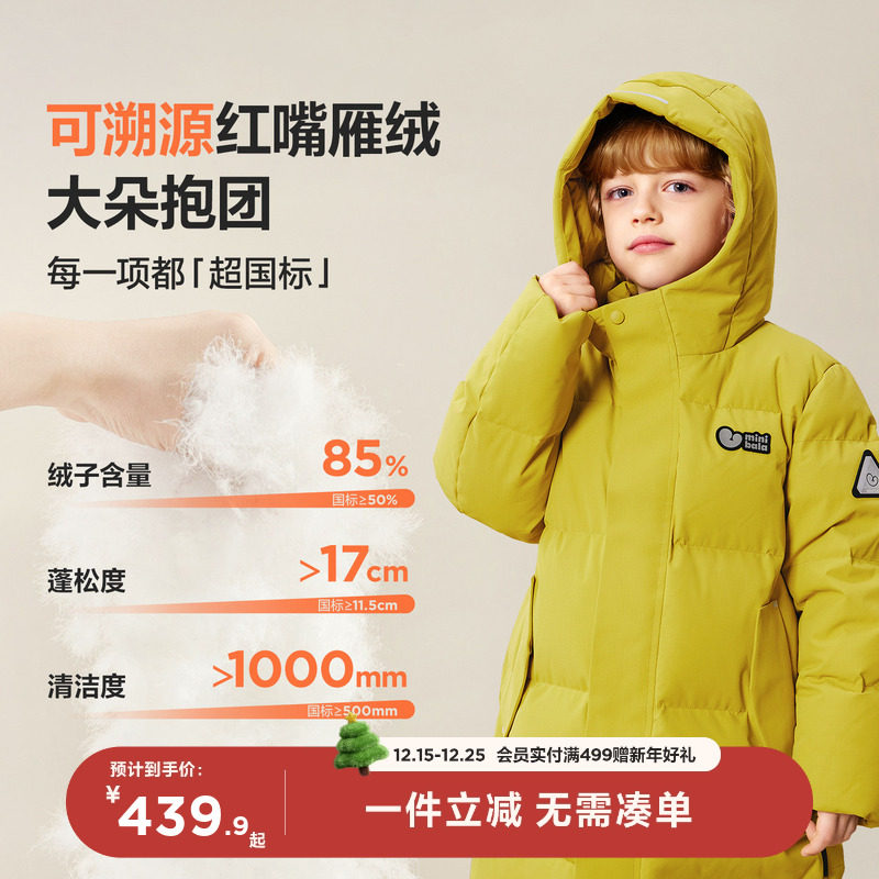 推荐理由:【叠礼.金到手299,叠消费卷到手239.9,叠品类卷更低】,[真心绒]迷你巴拉巴拉男女童儿童羽绒服宝宝长款三防2025冬新品