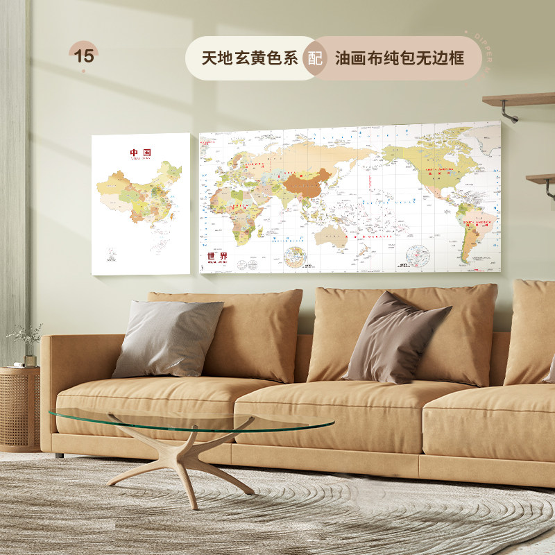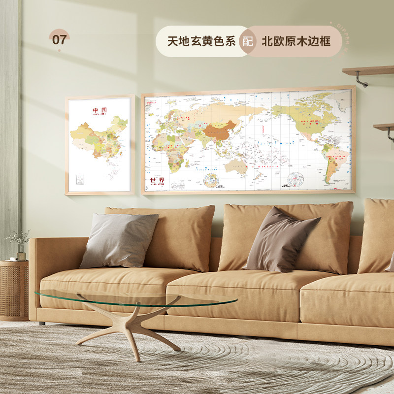 【北斗官方】中国地图世界地图挂图 行政区划高清挂图中英文装饰框画 客厅装饰画沙发背景墙壁画 办公室墙面装饰挂画