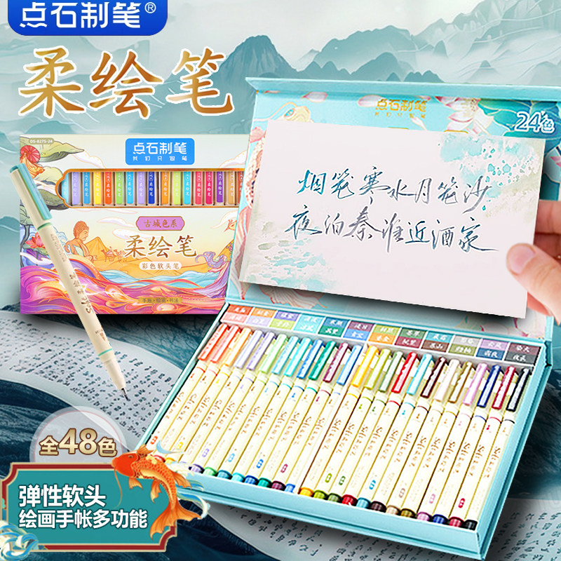 点石春夏秋冬软头柔绘彩色秀丽笔四季手账笔Brush绘画水彩笔涂鸦思维导图练字书法小楷动漫美术勾线笔DS-827
