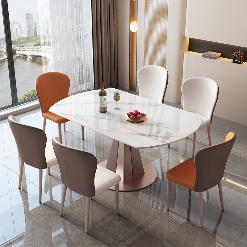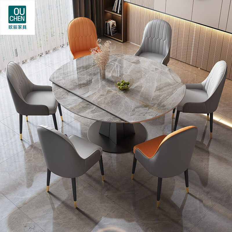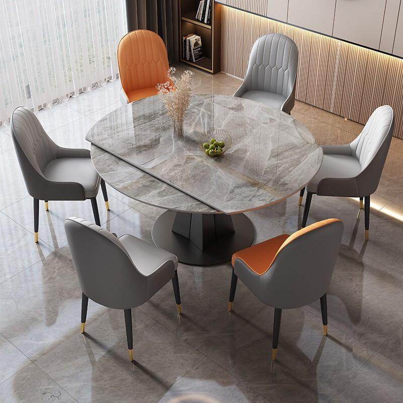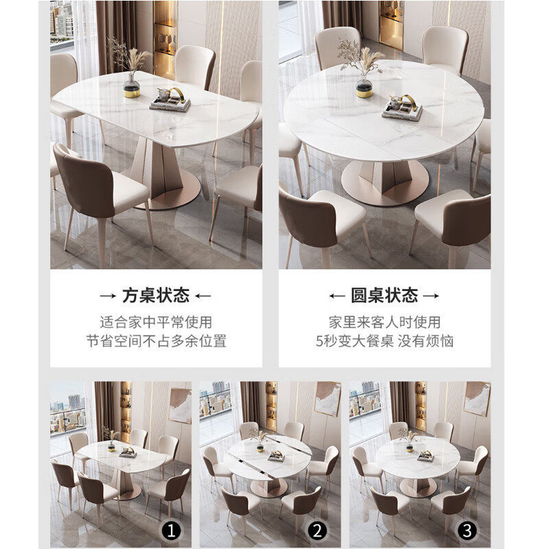 推荐理由:轻奢岩板餐桌椅组合多功能家用小户型圆桌桌现代简约折叠伸缩旋转