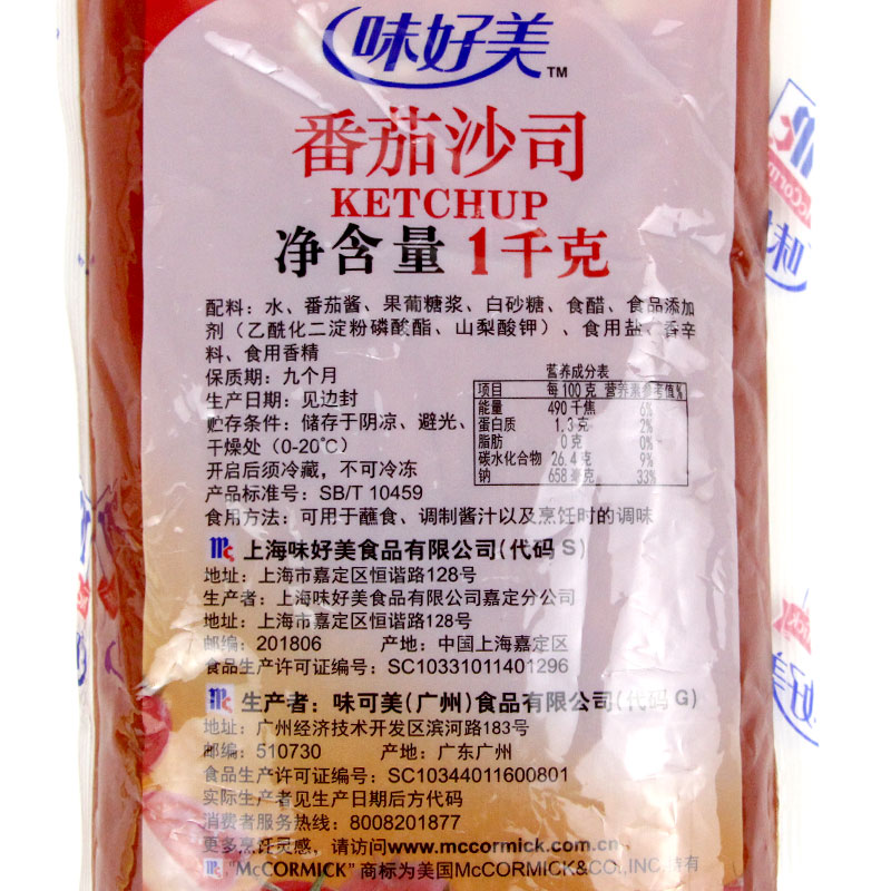 推荐理由:味好美番茄沙司1kg商用 披萨意面汉堡手抓饼调味酱料薯条鸡块蘸酱