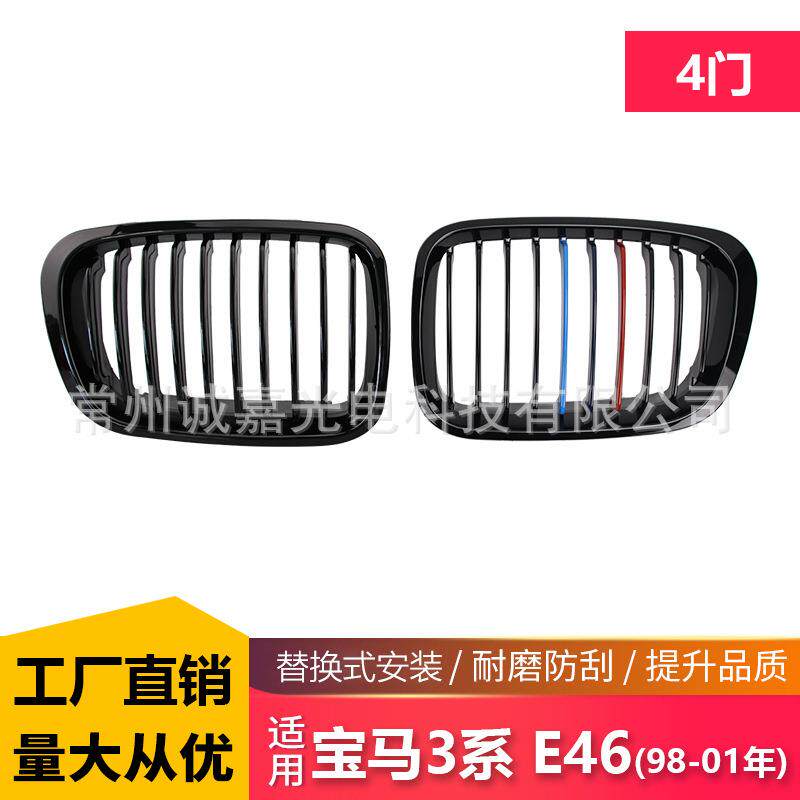 适用于宝马3系E4698-01年单杠三色中网老款四门改装双线进气格栅