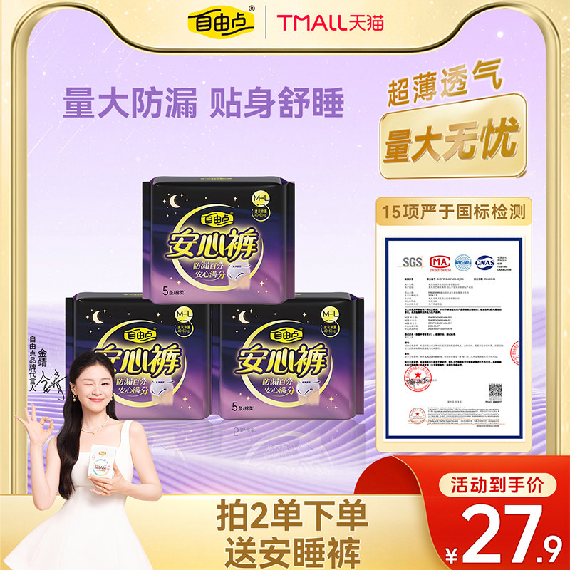 自由点安睡裤安心裤超薄姨妈巾防漏裤型卫生巾夜用正品官方旗舰店