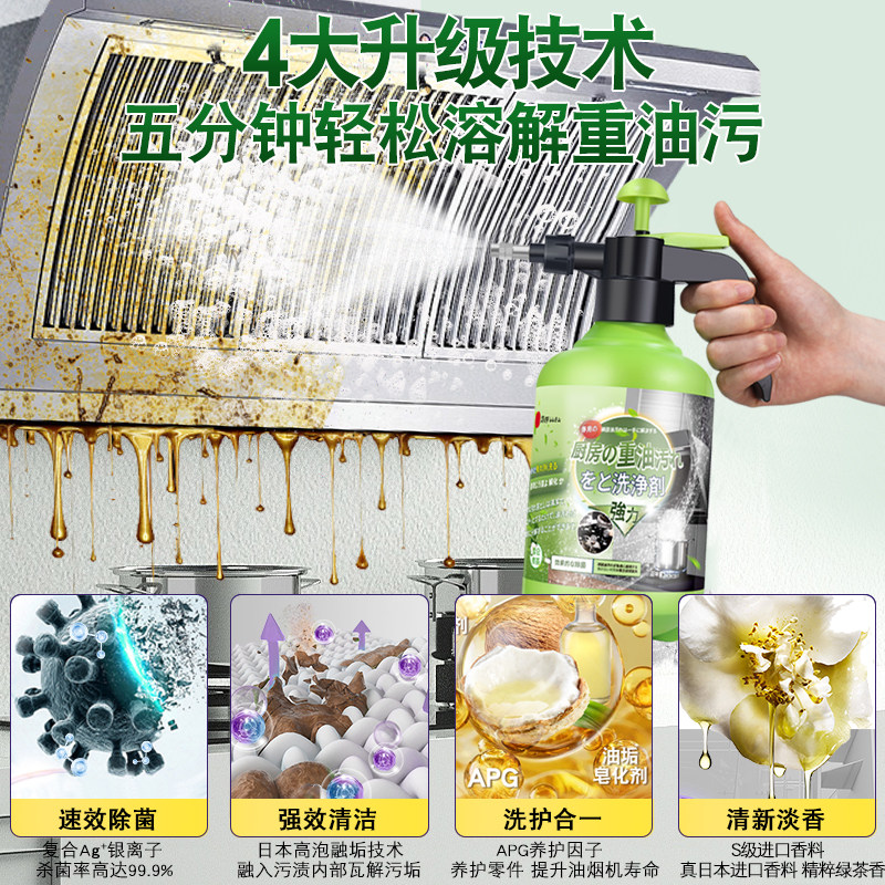 日本抽油烟机清洗剂厨房去除重油污净油渍强力清洁泡沫清洁剂神器