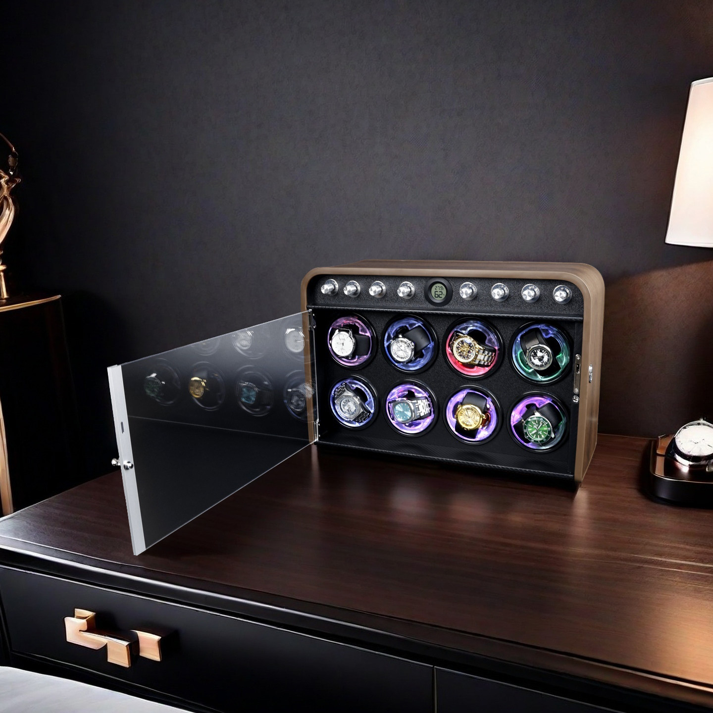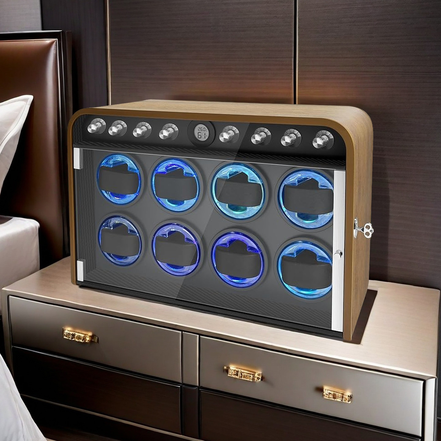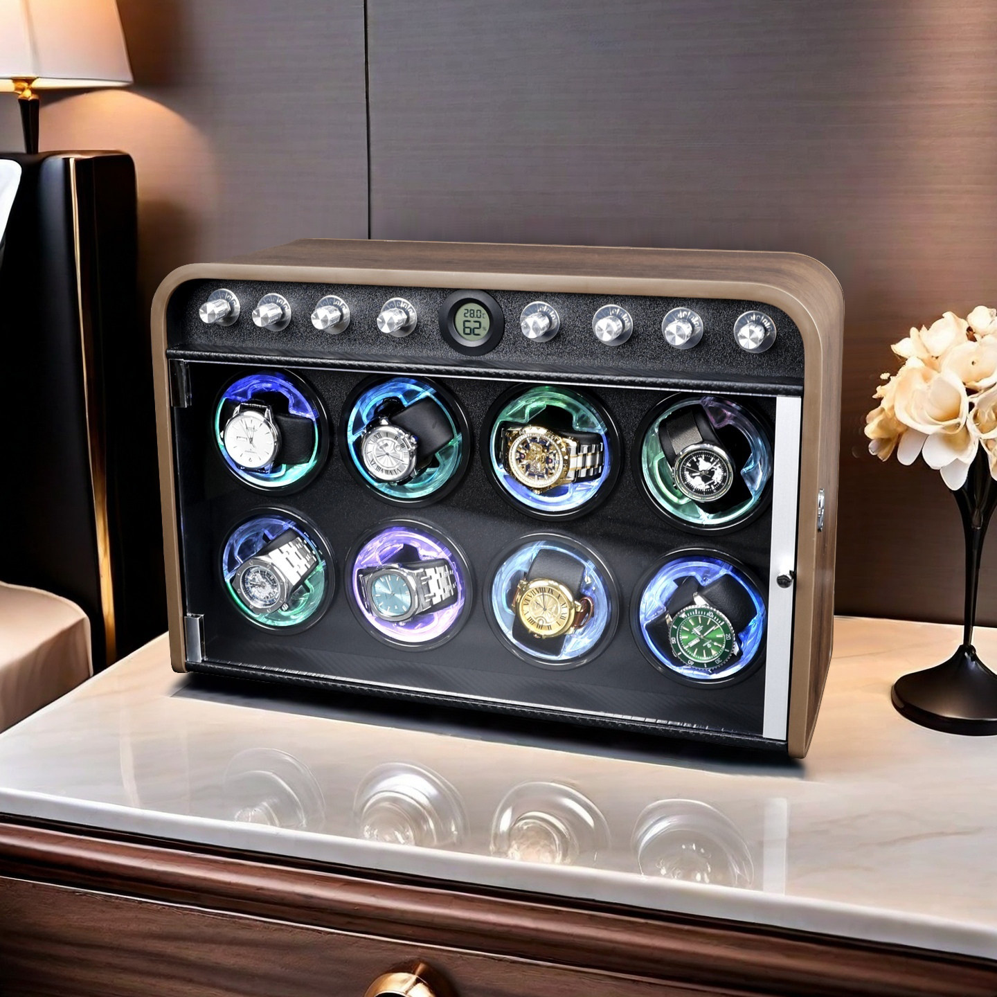 带锁八表位摇表器黑檀机械表自动上调转表器静音上弦马达盒手表盒