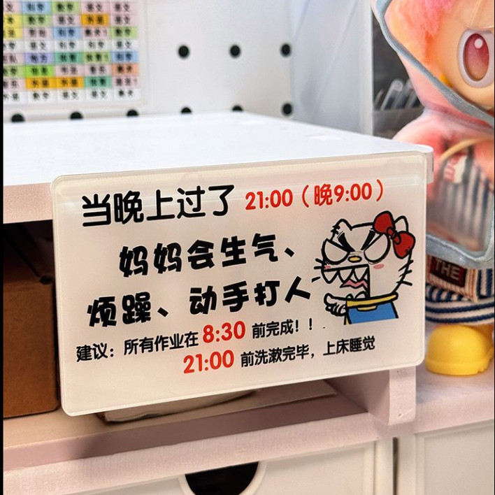 小学生习惯养成卡片9点之前请上床9点之前完成作业妈妈会生气标牌
