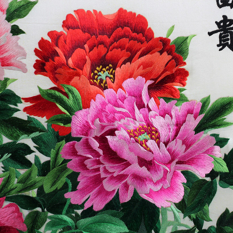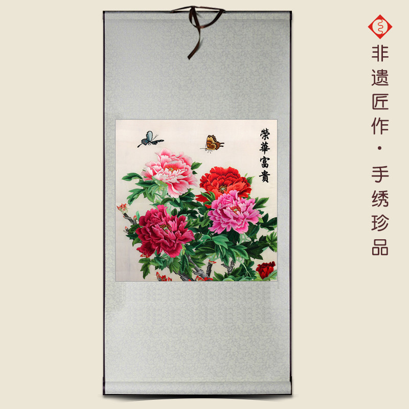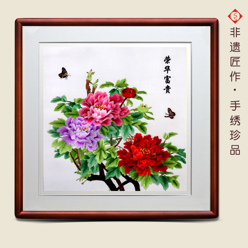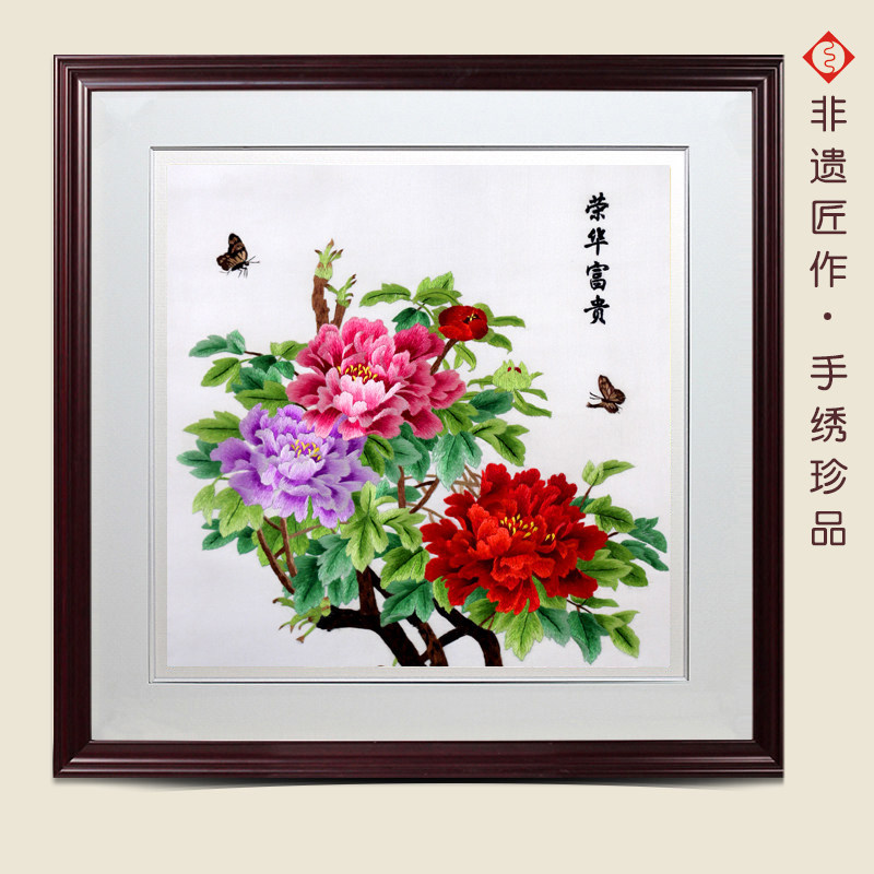 有福湘绣牡丹荣华富贵共舞春风成品书房装饰画手工刺绣风水招财