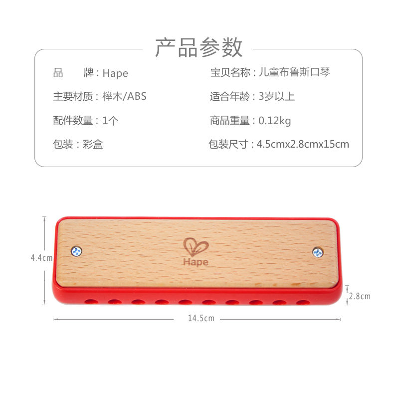 Hape儿童布鲁斯口琴初学婴幼儿园宝宝口风琴口哨乐器吹奏玩具10孔