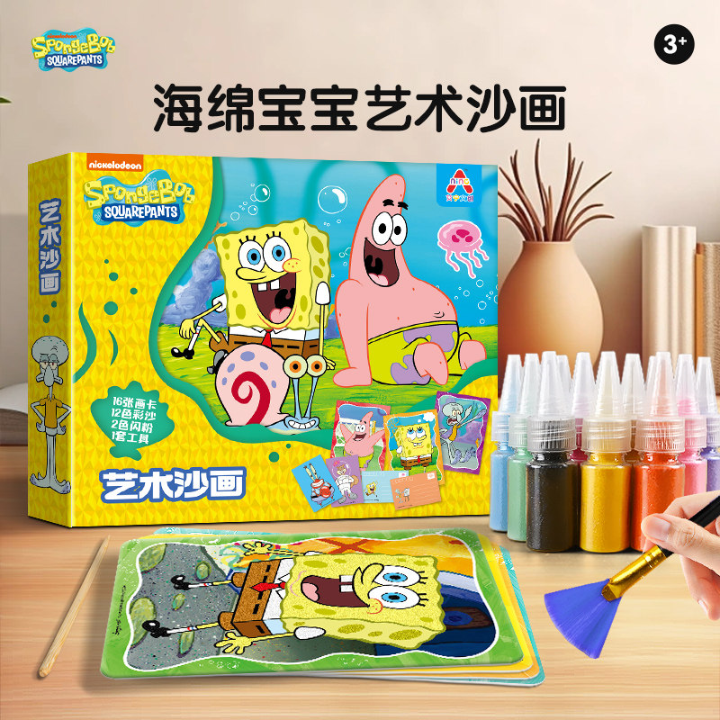 海绵宝宝沙画儿童diy手工彩沙画彩砂幼儿男女孩细沙流沙益智玩具