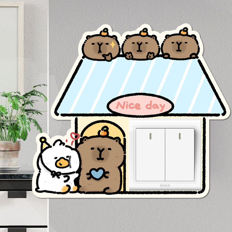 推荐理由:墙面开关插座装饰贴墙体遮丑可爱卡通创意童趣插座边框贴卡皮巴拉