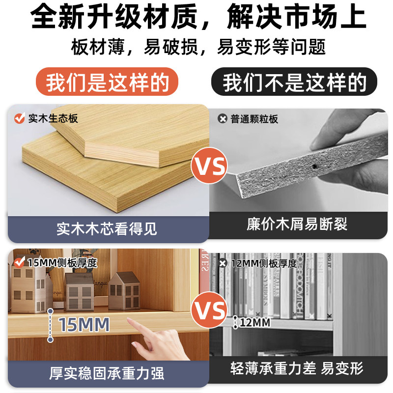 推荐理由:加厚15MM实木书柜 稳固承重 无异味