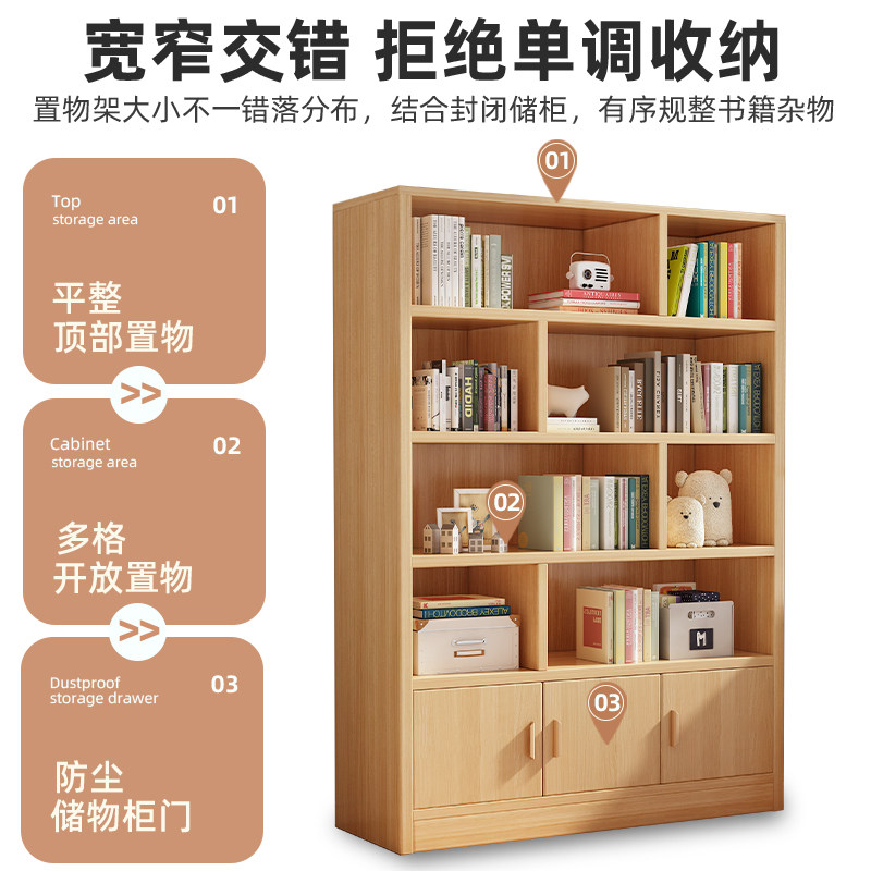 实木书柜学生家用儿童书架落地置物架多层客厅新款储物柜一体靠墙