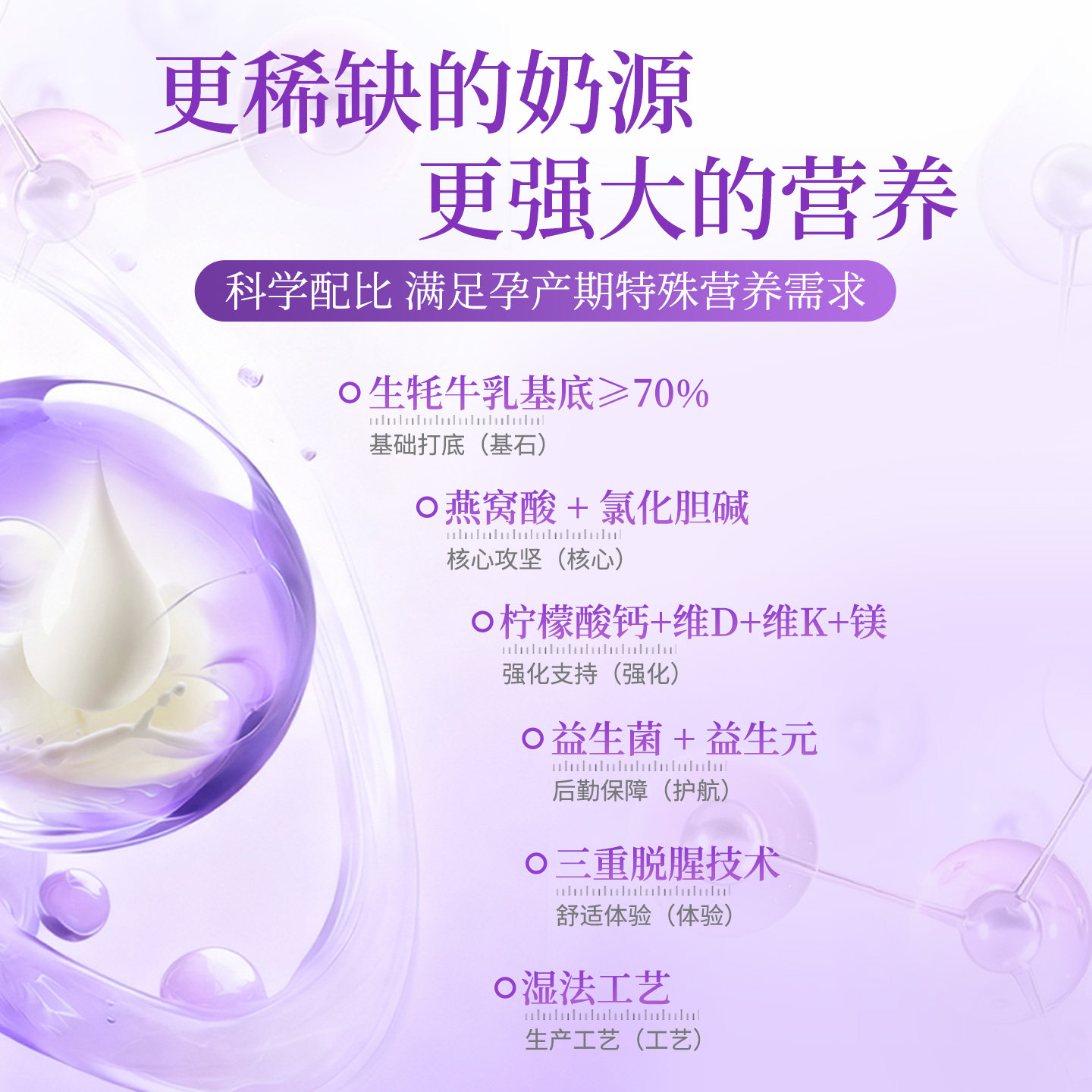 推荐理由:法澜秀孕产妇奶粉早中晚期燕窝酸柠檬酸钙胆碱益生菌哺乳期牦牛奶