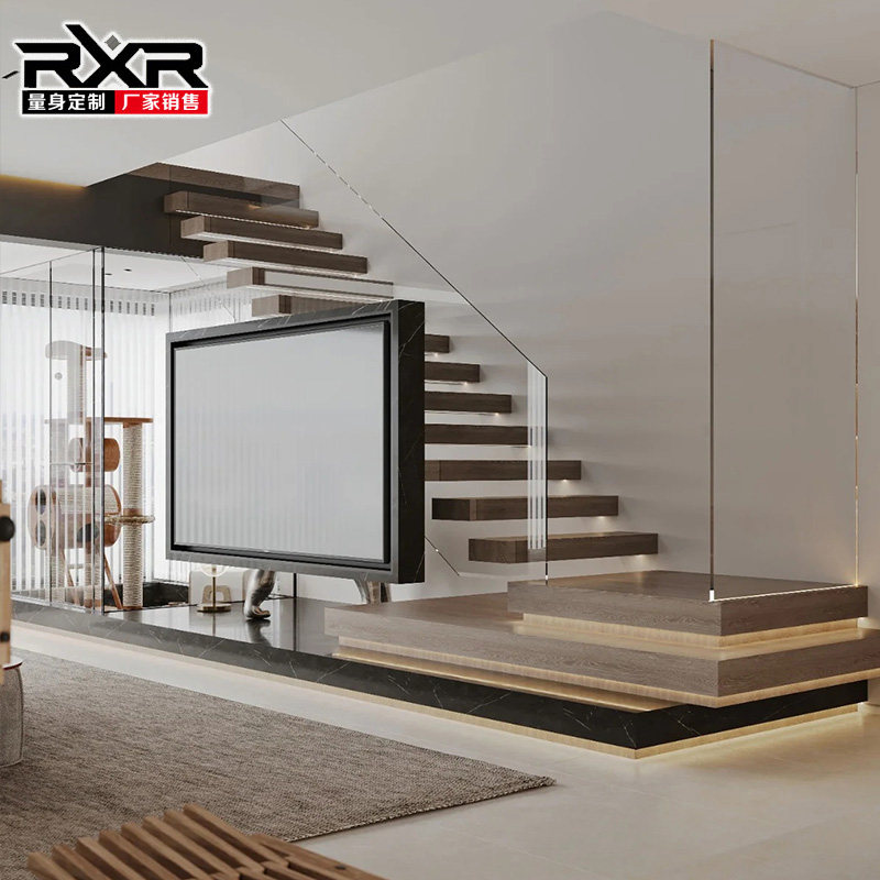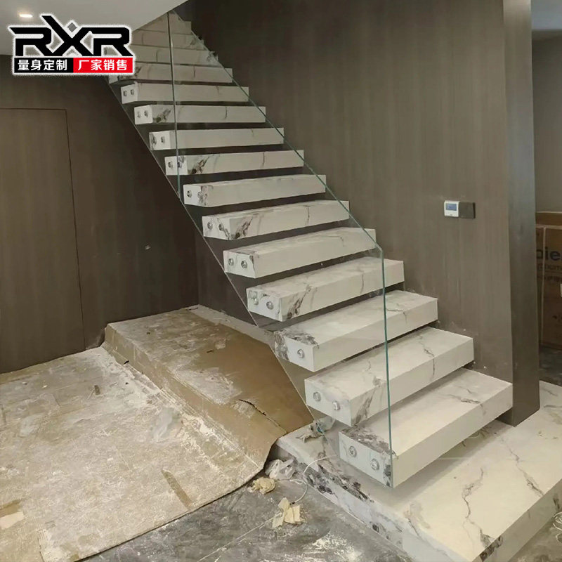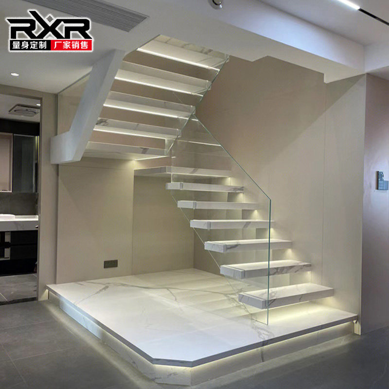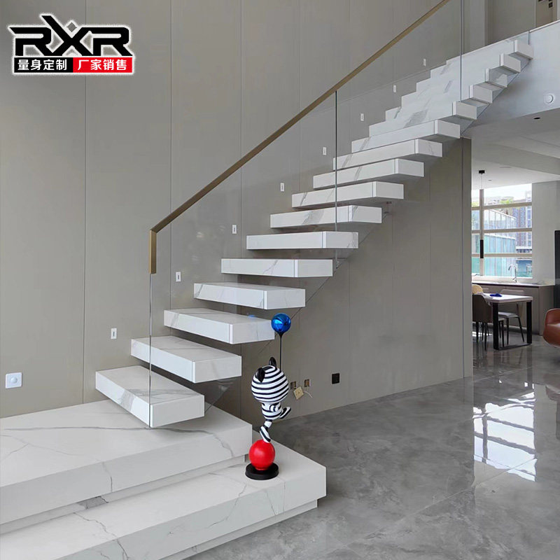 定制悬空大理石岩板悬浮楼梯双跑自建房室内整体复式阁楼别墅轻奢