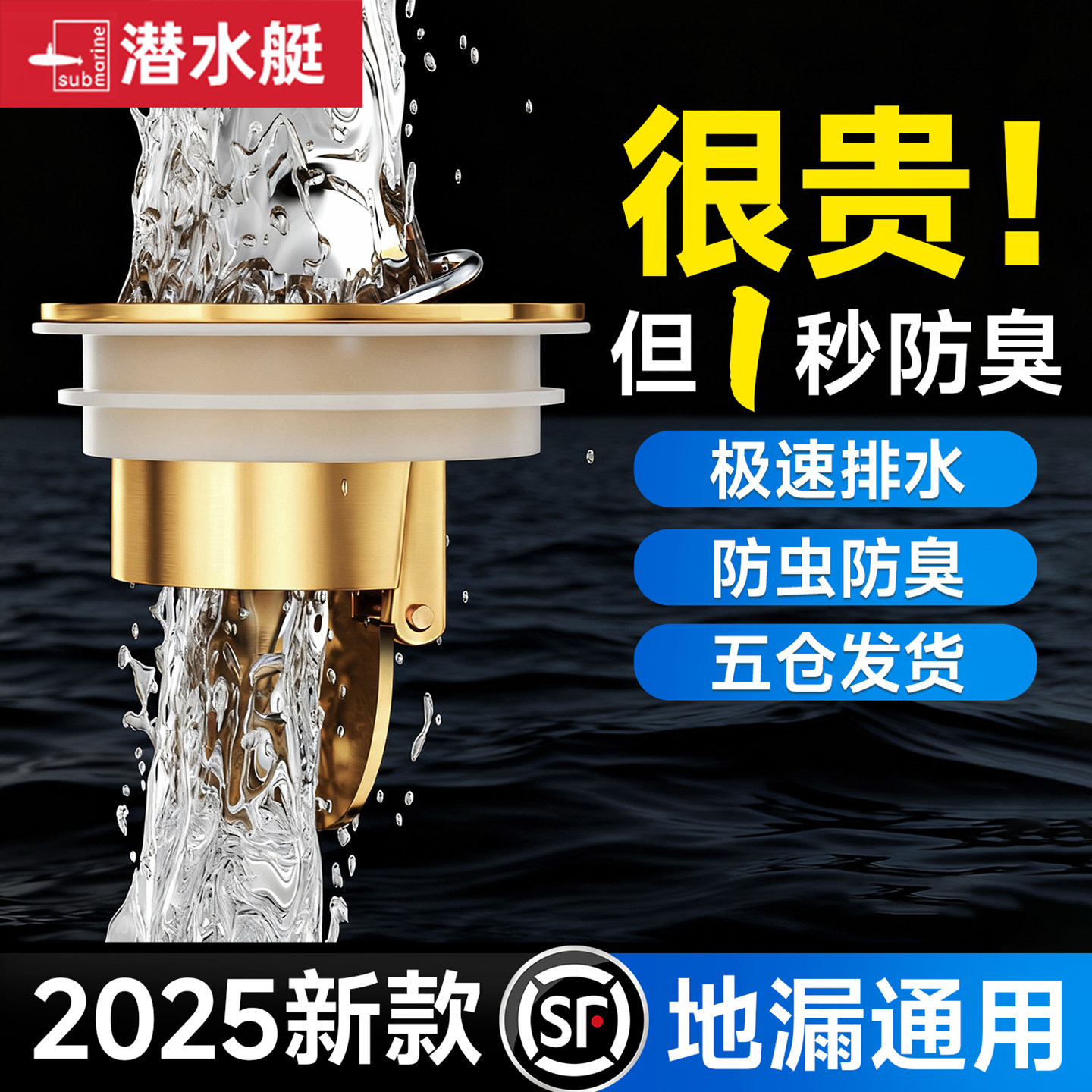 潜水艇地漏芯防臭器卫生间通用神器内芯防反味浴室下水道防返臭盖