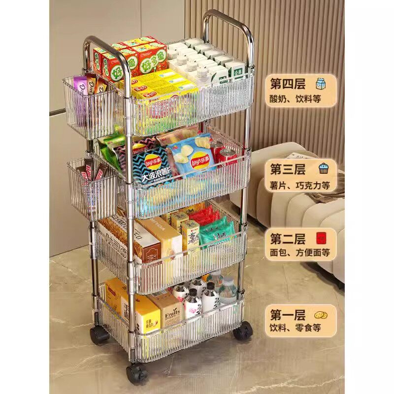零食置物架小推车落地收纳盒多层化妆品柜子客厅厨房分层移动饮料
