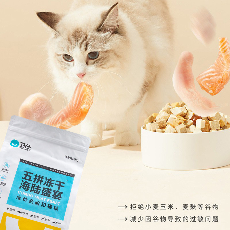 推荐理由:仁可宠物 卫仕冻干五拼盛宴全鸡海洋全价猫主粮2kg成幼猫粮猫干粮