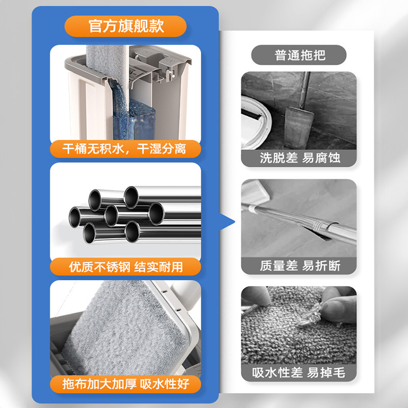 推荐理由:2024新款平板拖把家用一拖净拖布免手洗懒人水桶一体墩布拖地神器