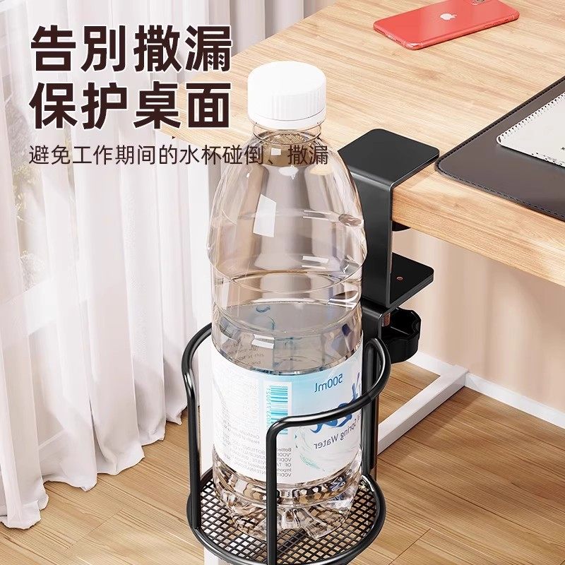 办公室桌边水杯架固定旋转桌面收纳水杯夹支架水杯托杯书桌置物架