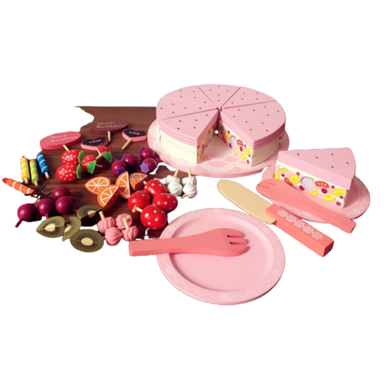 木制宝宝益智角色扮演草莓双层蛋糕仿真过家家生日蛋糕切切看玩具