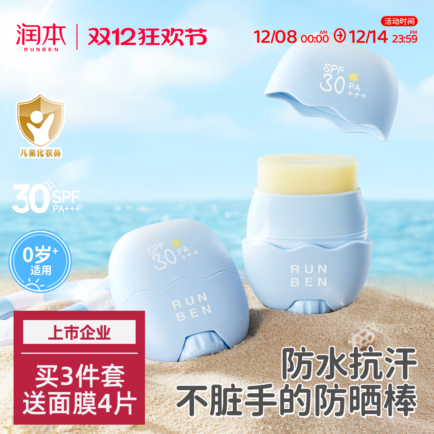润本儿童防晒棒宝宝男女童专用防晒乳户外隔离紫外线防水汗防晒霜