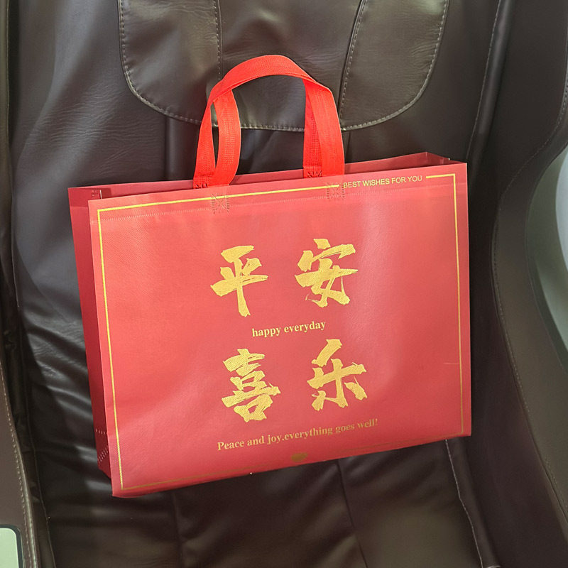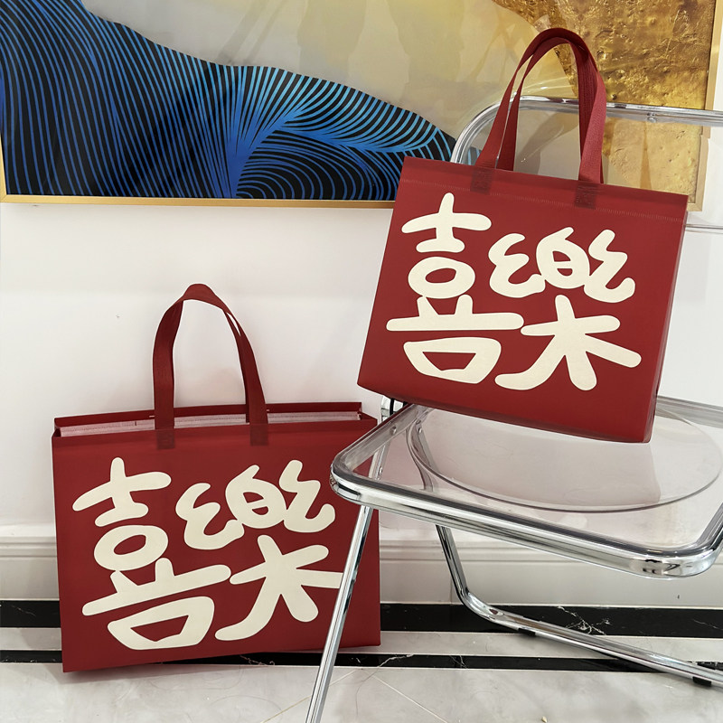 高档覆膜无纺布礼品袋服装店红色喜庆手提袋子定制防水包装购物袋