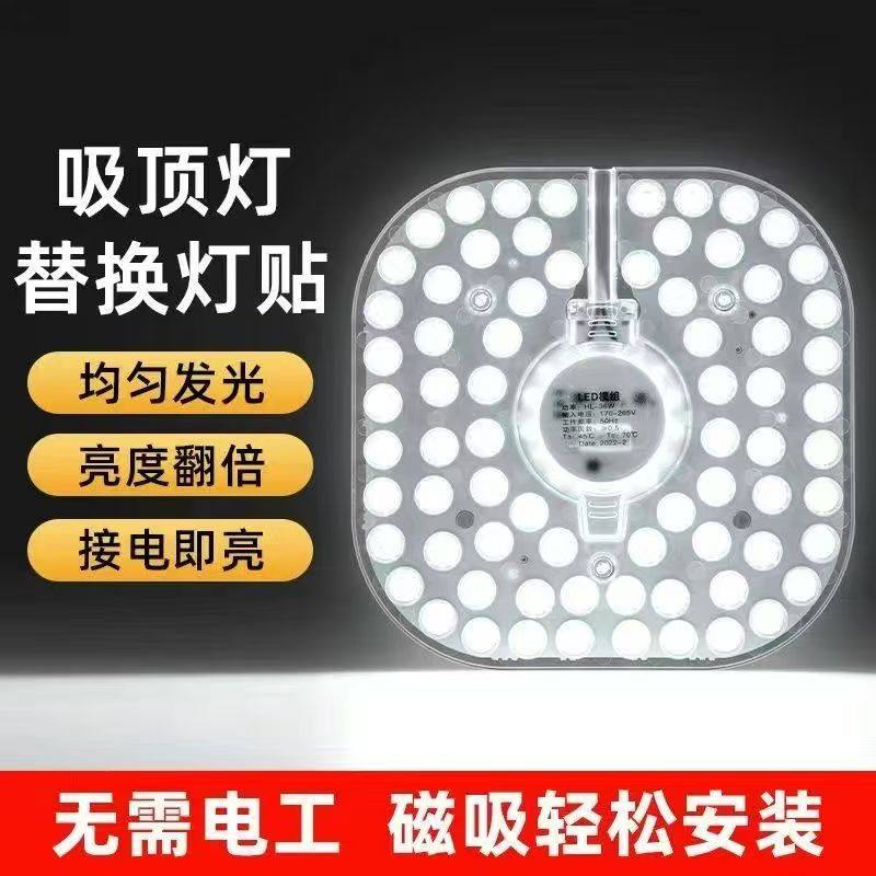 led吸顶灯灯芯免打孔改造节能灯改装替换灯片灯盘圆形模组磁吸式