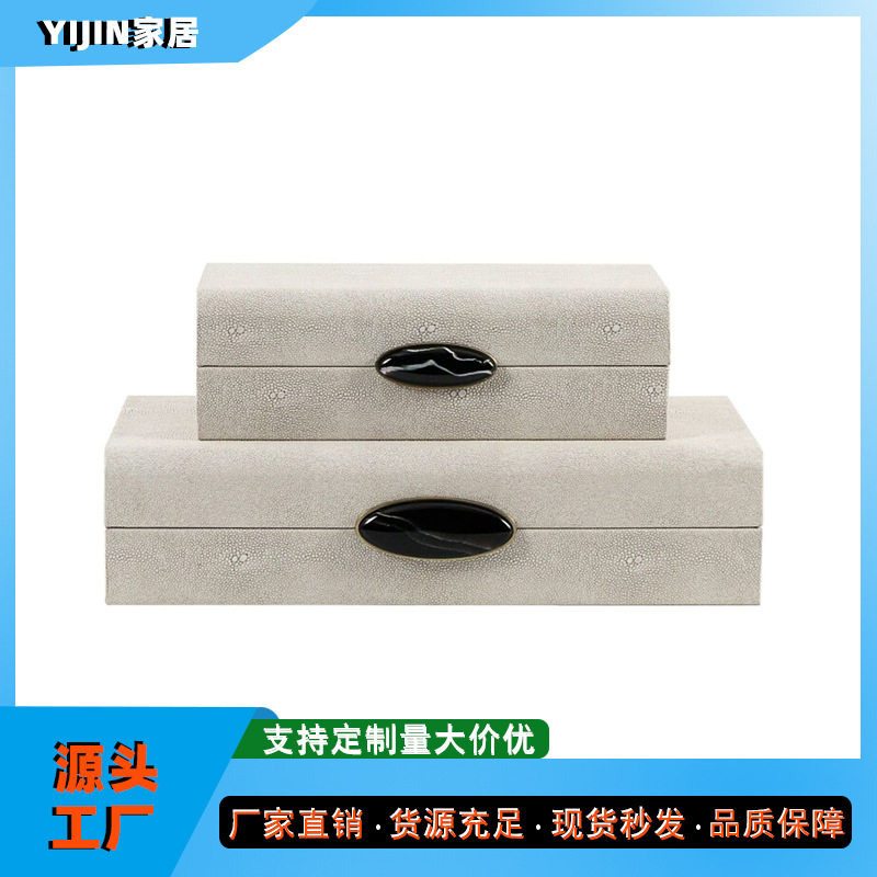 样板房衣帽间装饰盒摆件现代简约家居卧室梳妆台皮质首饰收纳盒子