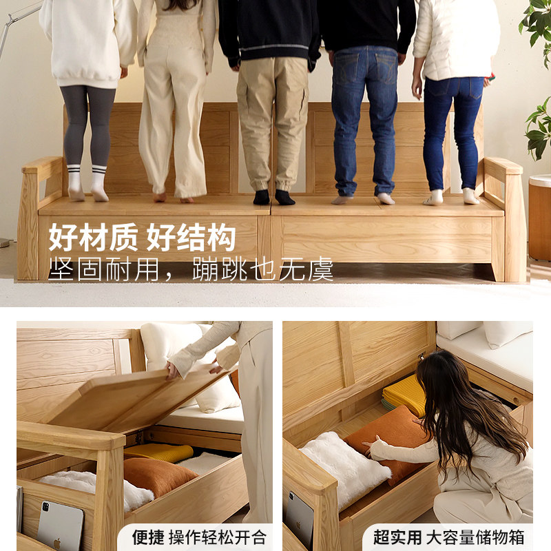 推荐理由:政府补贴白蜡木全实木沙发简约储物小户型冬夏两用家用原木风沙发