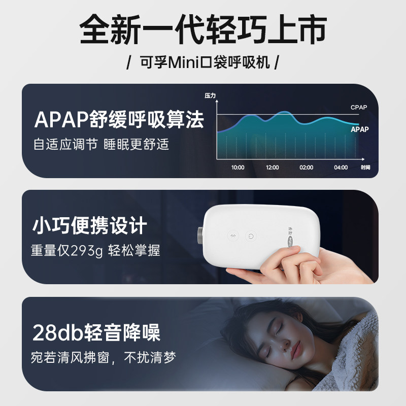 可孚Mini便携式呼吸机全自动口袋医疗家用睡眠暂停打呼噜止鼾器