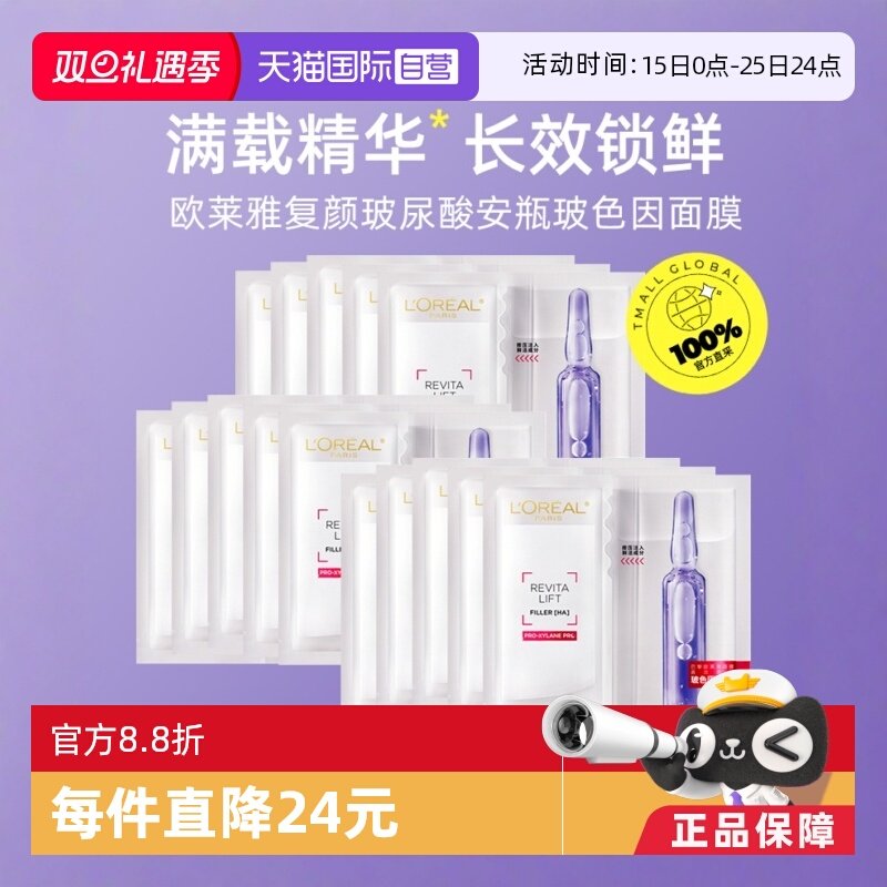 【自营】欧莱雅安瓶面膜女补水保湿玻尿酸面膜新升级安瓶面膜15片