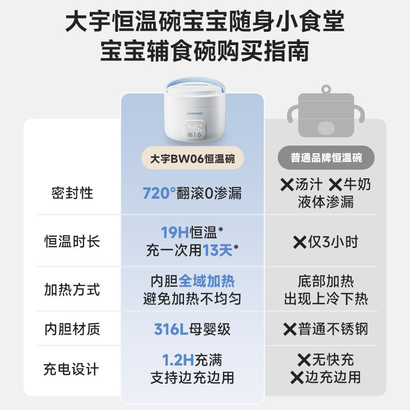 推荐理由:大宇宝宝恒温碗儿童智能加热碗充电子餐盘宝宝专用保温饭盒辅食碗